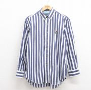 L★古着 ランズエンド 長袖 ブランド シャツ メンズ 90年代 90s コットン ボタンダウン 白他 ストライプ