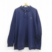 XL★古着 ラルフローレン 長袖 ブランド ポロ シャツ メンズ 90年代 90s ワンポイントロゴ 鹿の子 コットン USA製 紺他