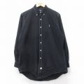 XL★古着 ラルフローレン 長袖 ブランド シャツ メンズ 90年代 90s ワンポイントロゴ 大きいサイズ コットン ボタンダウン 黒