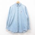 XL★古着 ラルフローレン 長袖 ブランド シャツ メンズ 90年代 90s ワンポイントロゴ コットン ボタンダウン 薄紺 デニム 26apr10