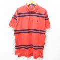 XL★古着 IZOD 半袖 ブランド ポロ シャツ メンズ 90年代 90s ワンポイントロゴ 鹿の子 コットン 赤他 ボーダー