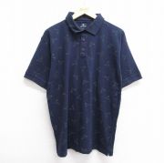 XL★古着 ノーティカ 半袖 ブランド ポロ シャツ メンズ 90年代 90s ヨット 総柄 鹿の子 大きいサイズ コットン 紺他
