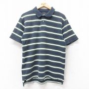 M★古着 エルエルビーン 半袖 ブランド ポロ シャツ メンズ 鹿の子 コットン 紺他 ボーダー