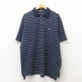 XL★古着 ラルフローレン 半袖 ブランド ポロ シャツ メンズ 90年代 90s ワンポイントロゴ 鹿の子 コットン 紺他 ボーダー