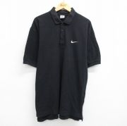 XL★古着 ナイキ NIKE 半袖 ブランド ポロ シャツ メンズ 00年代 00s ワンポイントロゴ 鹿の子 大きいサイズ ロング丈 コットン 黒