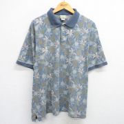 XL★古着 エルエルビーン 半袖 ブランド ポロ シャツ メンズ 00年代 00s 花 鹿の子 大きいサイズ 紺他