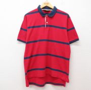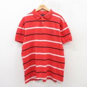 XL★古着 ラルフローレン 半袖 ブランド ポロ シャツ メンズ 90年代 90s ワンポイントロゴ 鹿の子 大きいサイズ コットン 赤他 ボーダー