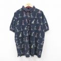 【商品名】 XL★古着 ノーティカ 半袖 ブランド ポロ シャツ メンズ 90年代 90s ヨット 総柄 鹿の子 大きいサイズ コットン 紺他