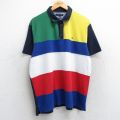 XL★古着 トミーヒルフィガー 半袖 ブランド ポロ シャツ メンズ 90年代 90s ワンポイントロゴ マルチカラー コットン 赤他