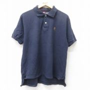 L★古着 ラルフローレン チャップス 半袖 ブランド ポロ シャツ メンズ 90年代 90s ワンポイントロゴ 鹿の子 コットン 紺