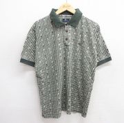 M★古着 ジバンシー 半袖 ブランド ポロ シャツ メンズ ワンポイントロゴ ゴルフ 総柄 コットン 薄緑他 チェック
