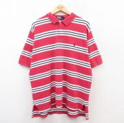 XL★古着 ラルフローレン 半袖 ブランド ポロ シャツ メンズ 90年代 90s ワンポイントロゴ 鹿の子 コットン 赤系他 ボーダー