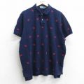 【商品名】 XL★古着 ラルフローレン 半袖 ブランド ポロ シャツ メンズ 90年代 90s ザリガニ 総柄 鹿の子 大きいサイズ コットン 紺他【spe】