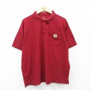 XL★古着 カーハート 半袖 ブランド ポロ シャツ メンズ ワンポイントロゴ 大きいサイズ コットン エンジ