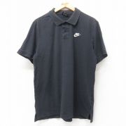 XL★古着 ナイキ NIKE 半袖 ブランド ポロ シャツ メンズ ワンポイントロゴ コットン 黒