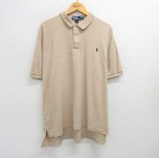 XL★古着 ラルフローレン 半袖 ブランド ポロ シャツ メンズ 90年代 90s ワンポイントロゴ 鹿の子 大きいサイズ コットン ベージュ