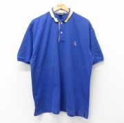 XL★古着 ラルフローレン 半袖 ブランド ポロ シャツ メンズ 90年代 90s ワンポイントロゴ 鹿の子 大きいサイズ コットン 青