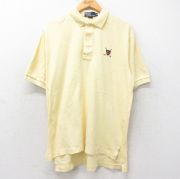 XL★古着 ラルフローレン 半袖 ブランド ポロ シャツ メンズ 90年代 90s ワンポイントロゴ ゴルフ 大きいサイズ コットン USA製 薄黄