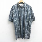XL★古着 リーボック 半袖 ブランド ポロ シャツ メンズ ゴルフ 総柄 大きいサイズ コットン 紺系他