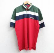 XL★古着 トミーヒルフィガー 半袖 ブランド ポロ シャツ メンズ 90年代 90s ワンポイントロゴ マルチカラー コットン 赤他