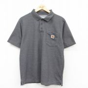 L★古着 カーハート 半袖 ブランド ポロ シャツ メンズ ワンポイントロゴ 濃グレー 霜降り