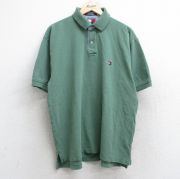 XL★古着 トミーヒルフィガー 半袖 ブランド ポロ シャツ メンズ 90年代 90s ワンポイントロゴ 鹿の子 コットン 緑