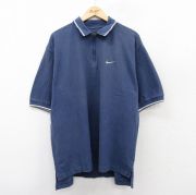 XL★古着 ナイキ NIKE 半袖 ハーフジップ ブランド ポロ シャツ メンズ ワンポイントロゴ ゴルフ 鹿の子 大きいサイズ コットン 紺