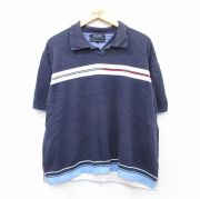 XL★古着 トミーヒルフィガー 半袖 ブランド ポロ シャツ メンズ 大きいサイズ コットン 開襟 オープンカラー 紺他