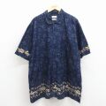 XL★古着 セントジョンズベイ 半袖 ハワイアン シャツ メンズ 00年代 00s ハイビスカス 大きいサイズ ロング丈 コットン 紺他【spe】 26apr25