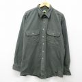 XL★古着 長袖 ヘビー フランネル シャツ メンズ ロング丈 大きいサイズ コットン ボタンダウン 濃グレー