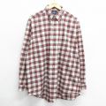 XL★古着 長袖 ヘビー フランネル シャツ メンズ 大きいサイズ ロング丈 コットン ボタンダウン 赤他 チェック