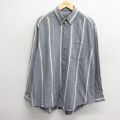 XL★古着 ピューリタン 長袖 フランネル シャツ メンズ 90年代 90s 大きいサイズ ボタンダウン 紺他 ストライプ