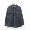 XL★古着 長袖 ヘビー フランネル シャツ メンズ ロング丈 大きいサイズ コットン ボタンダウン 濃グレー