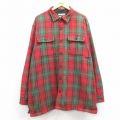 XL★古着 長袖 フランネル シャツ メンズ 00年代 00s 大きいサイズ ロング丈 赤他 チェック 内側キルティング