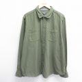 XL★古着 長袖 ヘビー フランネル シャツ メンズ 大きいサイズ ロング丈 コットン 緑