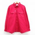 XL★古着 キングサイズ 長袖 ヘビー フランネル シャツ メンズ 大きいサイズ ロング丈 コットン エンジ