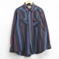 【商品名】 XL★古着 ELY 長袖 ウエスタン フランネル シャツ メンズ 90年代 90s 大きいサイズ 黒他 ストライプ