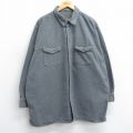 XL★古着 長袖 ヘビー フランネル シャツ メンズ ロング丈 大きいサイズ コットン ボタンダウン 濃グレー