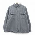 XL★古着 長袖 ヘビー フランネル シャツ メンズ ロング丈 大きいサイズ コットン ボタンダウン 濃グレー