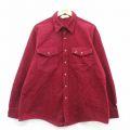 XL★古着 キングサイズ 長袖 ヘビー フランネル シャツ メンズ 大きいサイズ ロング丈 コットン エンジ