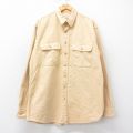 XL★古着 長袖 ヘビー フランネル シャツ メンズ 大きいサイズ ロング丈 コットン 薄ベージュ