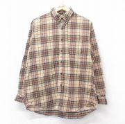 L★古着 エルエルビーン 長袖 フランネル シャツ メンズ 90年代 90s コットン ボタンダウン USA製 ベージュ他 チェック