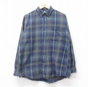 XL★古着 長袖 フランネル シャツ メンズ 90年代 90s 大きいサイズ コットン ボタンダウン 紺他 チェック