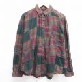 【商品名】 XL★古着 STRUCTURE 長袖 フランネル シャツ メンズ パッチワーク 大きいサイズ コットン ボタンダウン 緑他 チェック【spe】