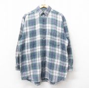 XL★古着 長袖 フランネル シャツ メンズ 90年代 90s 大きいサイズ コットン ボタンダウン 紺他 チェック