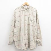XL★古着 長袖 フランネル シャツ メンズ 大きいサイズ ロング丈 コットン ボタンダウン ベージュ他 チェック