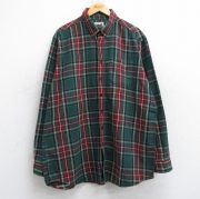 XL★古着 長袖 フランネル シャツ メンズ 90年代 90s 大きいサイズ コットン ボタンダウン 緑系他 チェック