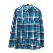 XL★古着 FADED GLORY 長袖 フランネル シャツ メンズ 大きいサイズ コットン ボタンダウン 緑他 チェック