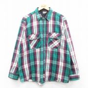 XL★古着 長袖 フランネル シャツ メンズ 80年代 80s 大きいサイズ 緑他 チェック