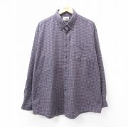XL★古着 長袖 フランネル シャツ メンズ 大きいサイズ コットン ボタンダウン 紺他 チェック